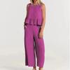 Embrace effortless summer style with this chic two-piece ensemble, featuring a sleeveless pleated vest paired with wide-leg pants. Crafted with a comfortable and breathable blend of cotton-linen, it offers a relaxed yet sophisticated silhouette. The lightweight design makes it perfect for warm weather, while the addition of spandex provides a hint of stretch for ease of movement. Ideal for both casual outings and more formal occasions, this suit embodies both comfort and elegance.