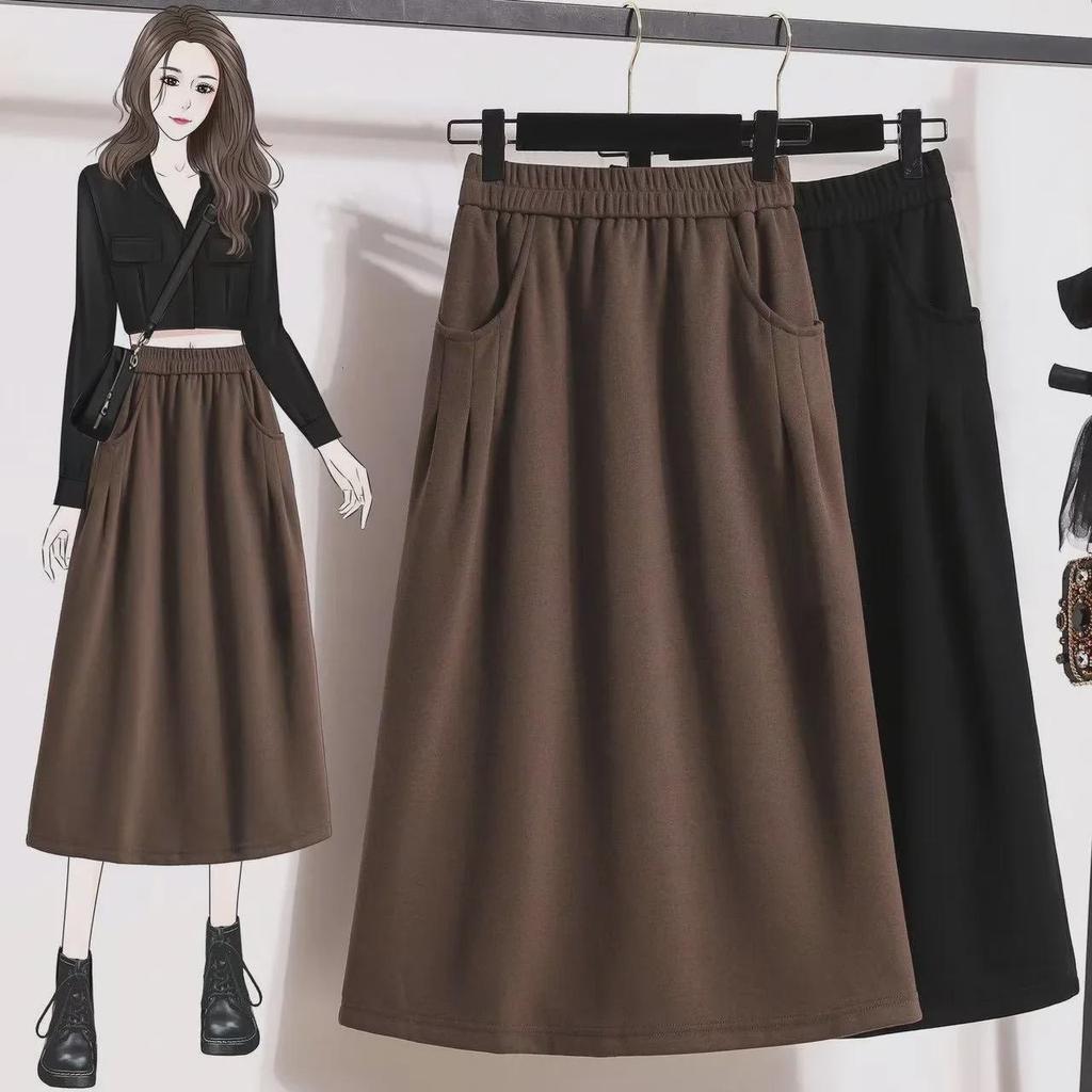 280g Women's High-Waist Imitation Cotton Skirt - Autumn/Winter, Plus Size, Slim Fit for Moms and Curvy Figures