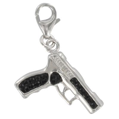 [Q4906] - Silver Charm Pendant 'Pistolet' Black Silver-plated (rhodium-plated) - 18x15 Mm