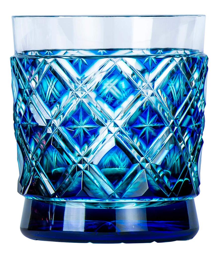 Yamashita Kogei Rock Glass Lazuli X H85mm Satsuma Kiriko Double Lattice Old 13049060 Green/Lapis 78