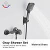 Gray Waterfall Bathtub Faucet With Hand Shower Brass Chrome Wall Mounted Bathroom Shower Mixer Tap Full Shower System Set