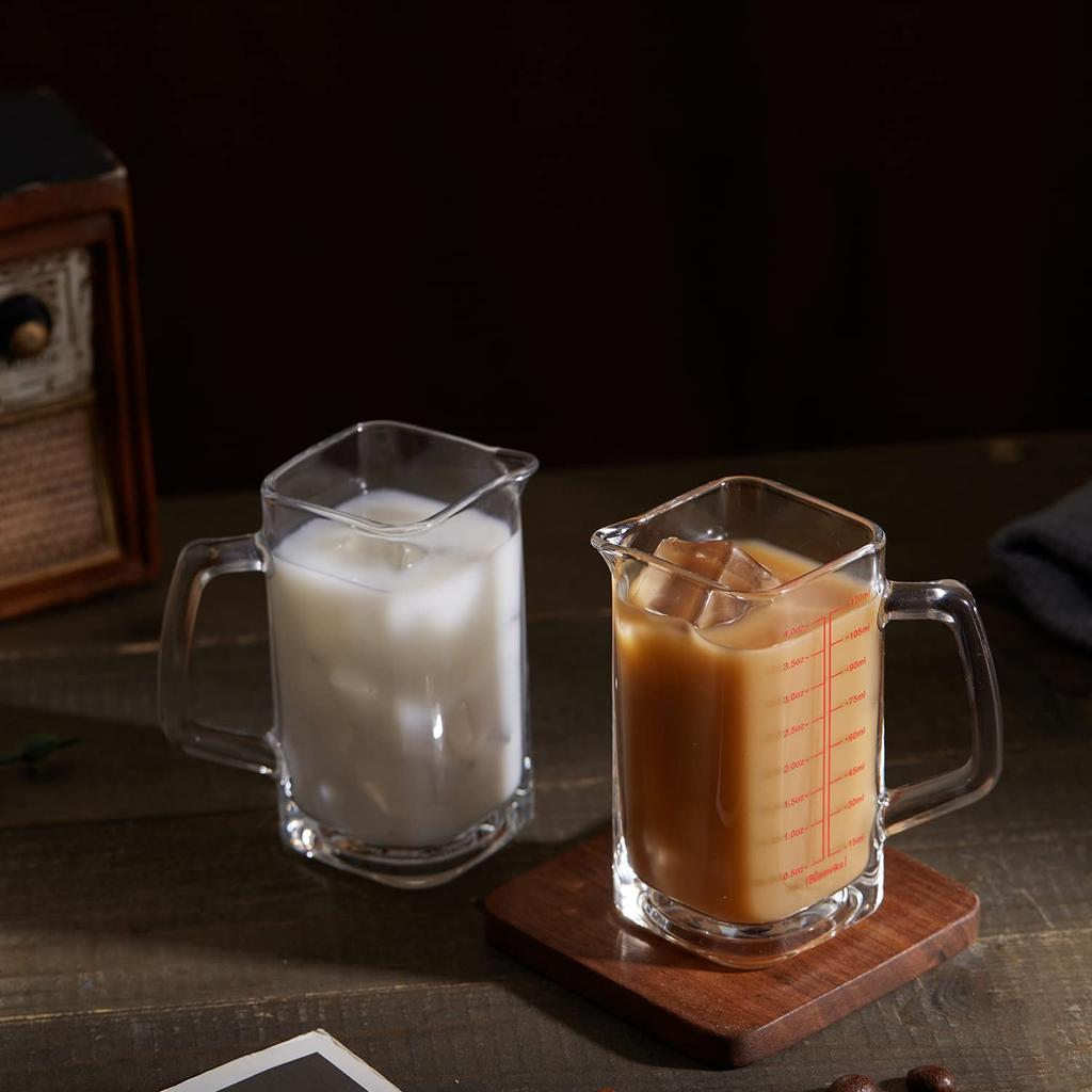 Square Measuring Cup Shot Glasses - 4oz with Glass Handle, V-Shaped Spout. Ideal for Espresso, Liquid Separation