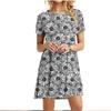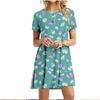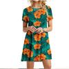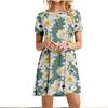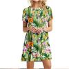 Summer 3D Green Leaves Floral Printed Mini Dress For Women Loose Oversized Casual Short Sleeve O-Neck A-Line Dress Sundress