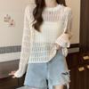 Women's Hollowed Out Knitted Sweater for Spring and Summer Loose Fitting Sun Protection Cover Long Sleeved Unique Top