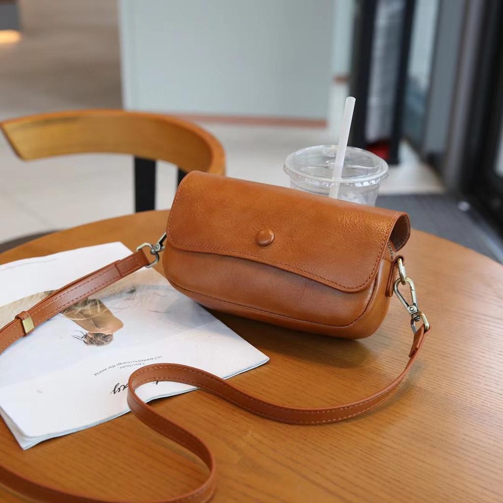 The First Layer Cowhide Small Bag for Women In Summer New Niche Retro Leather Shoulder Bag Temperament Versatile Crossbody Bag