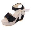 Slope Heel Lace Bow Sandals Cute Sandals Women's Singles Shoes Women's Shoes Spring and Summer New Fish Mouth Beach