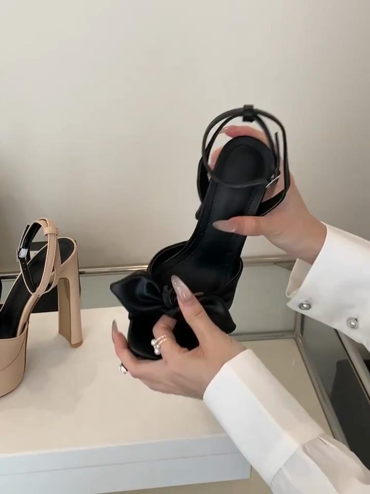 Eilyken Summer Butterfly-knot Square Toe Platform Heels Woman Sandals Street Buckle Strap Shoes Sandalias De Mujer