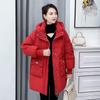 Women's Hooded Mid-Length Down Jacket with Pineapple Pocket - Loose Fit, Thick, Cold-Proof Winter Coat