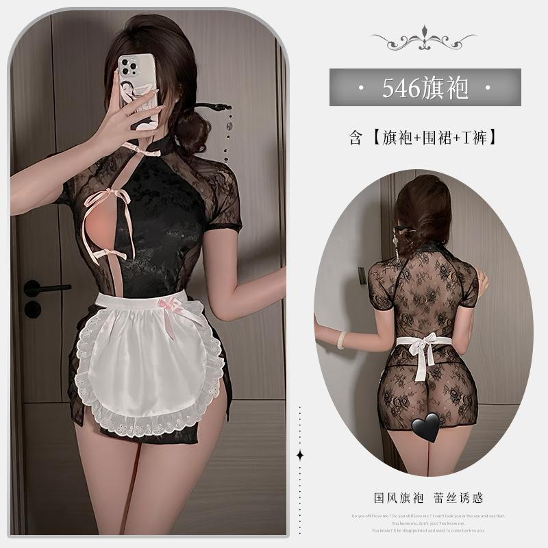 Xianyi Erotic Underwear Lace Perspective New Chinese Cheongsam Sexy Maid Outfit Free of Crotch Passion Temptation 546