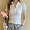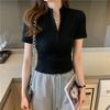 Summer New Slim Fit Cotton Short Sleeve Casual T-shirt Women Fashion Zipper Stand Temperament Simple Woman Tshirts Elegant Office Lady Tees Tops 26570