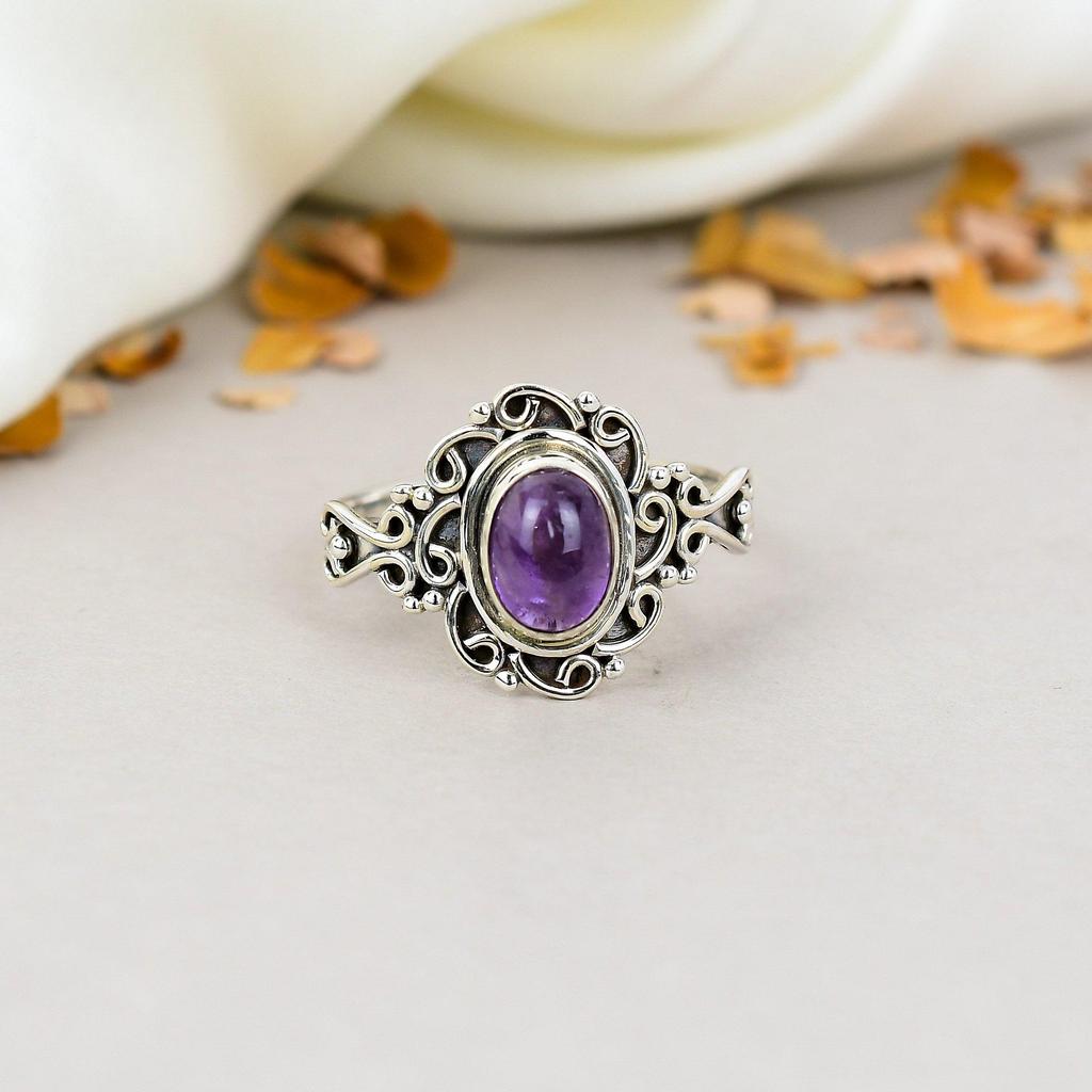 Amethyst Gemstone 925 Sterling Silver Oval Shape Handmade Jewelry Boho Ring For Women