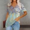 Women's Fashion V-Neck Classic Loose Big Barite 3D Print Casual Short Sleeve T-Shirt