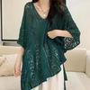 Summer Hollow Out Batwing Sleeve Plus Size Shirts for Women Fashion Solid V-neck Tops Knitted Loose Blouses Women Vintage Simple Lady Shirt New 26591