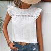 Summer New Round Neck Hollow Loose Lace Shirts Women Elegant Solid Ruffled Short Sleeve Casual Blouse Women Tops Slim Fit Vintage Fashion Shirt 26600