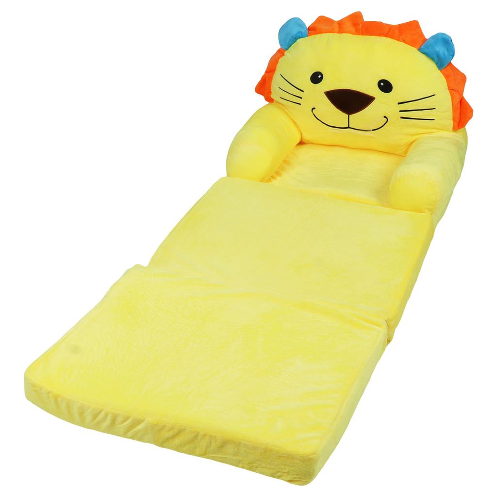 Kids Sofa Yellow Cartoon Animal Style Foldable Wide Handle Soft Breathable Toddler Chair for