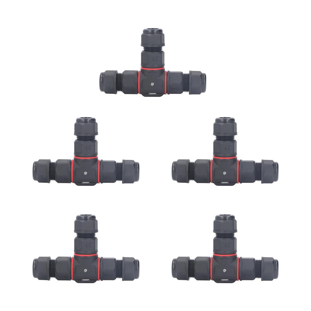 5Pcs T Type Aviation Connector 3 Pin Butt Joint IP68 Waterproof Plug Socket 16A AC250V