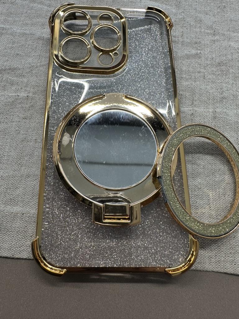 Plating Flash Mirror Holder Stand Soft Silicone Four Corners Air Cushion Shockproof Protection Case for iPhone Huawei Honor OPPO Infinix Itel Tecno