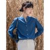 Temperament Chinese Denim Shirt for Women In Winter Retro Hong Kong Style Shirt Loose Long-sleeved Casual Stand Collar Top