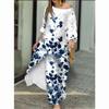 Women Two Piece Sets Pant Set Irregularity Round Neck Full Sleeve Tops Print Floral Splice Casual Loose Wide Leg Long Pants