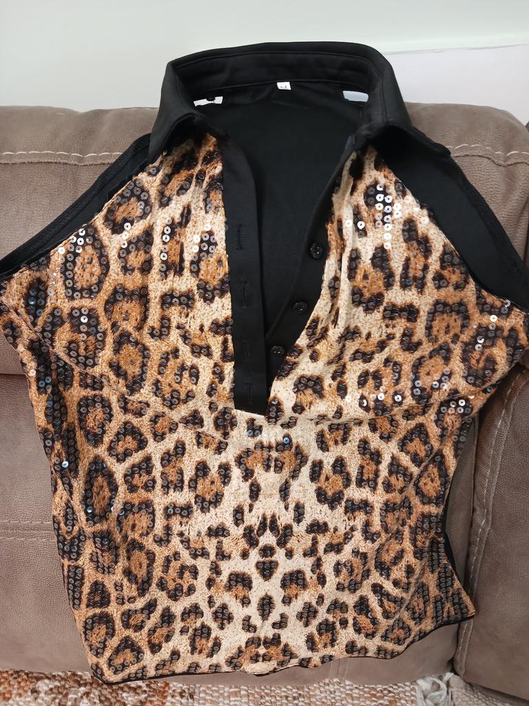 Beige Leopard Print Sequin Slim Fit Vest Summer 2025 Cross-Border Hanging Neck Collar Women's Top Polyester Fiber Blend