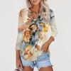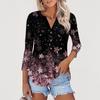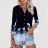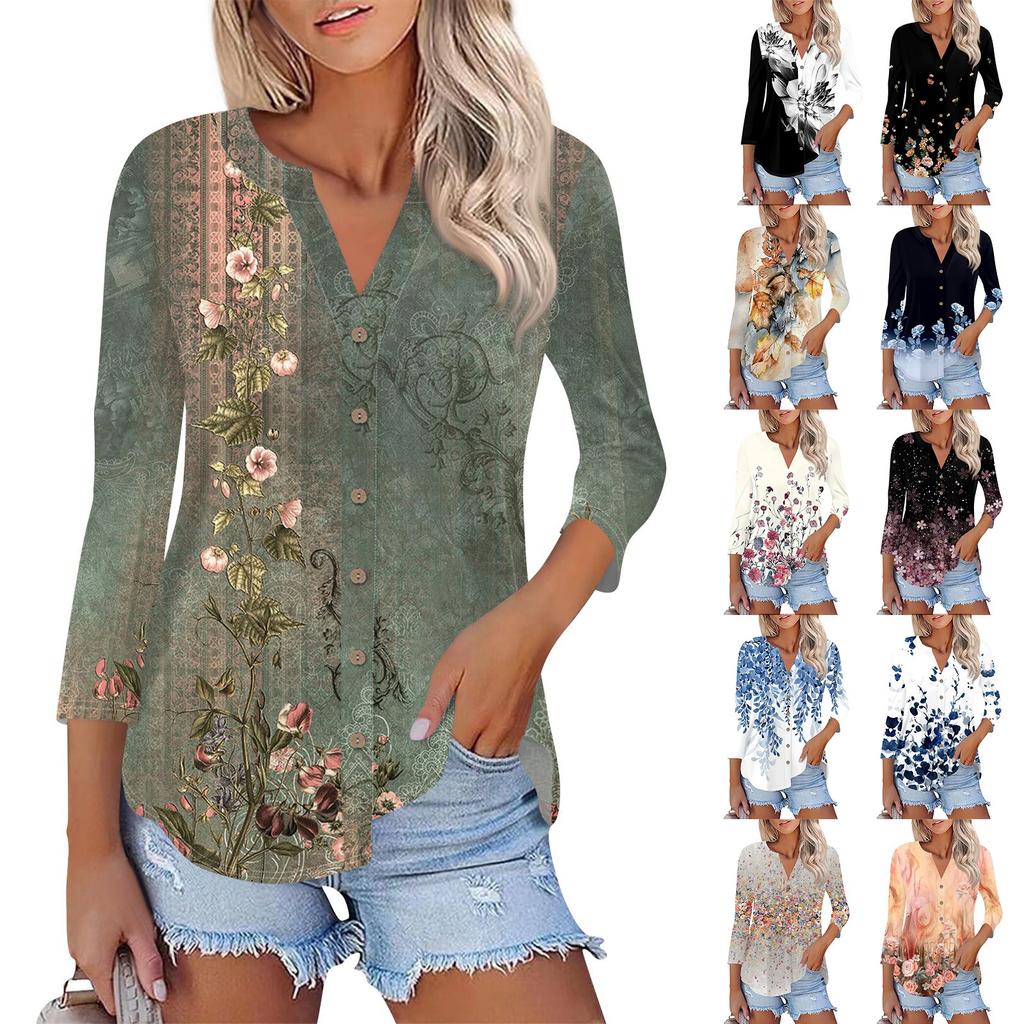 Women's Button Down Cardigan T Shirts 3/4 Sleeve V Neck Tees Casual Fashion Printed T-shirt Tops