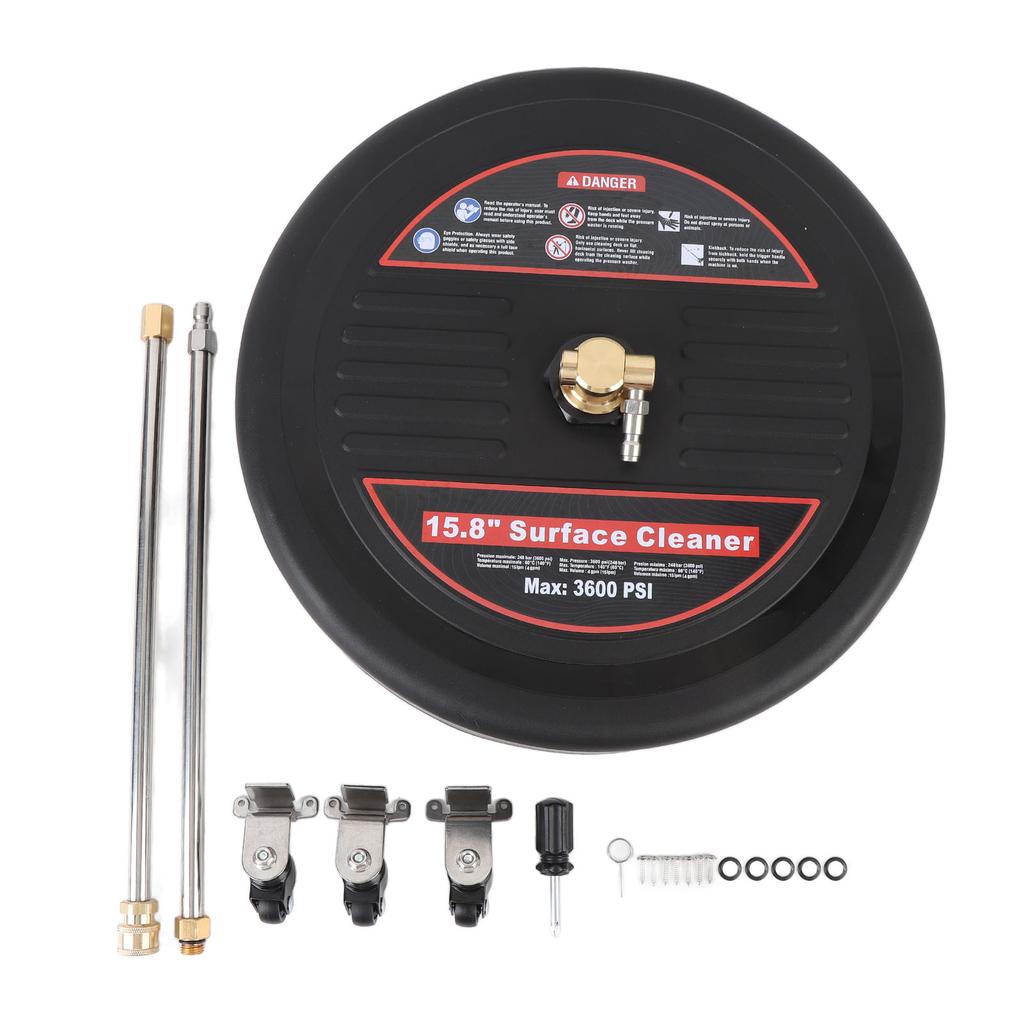 15.8 Inch Surface Cleaner with Wheels 3600PSI 1/4 Inch Quick Plug Stainless Steel Pressure Washer
