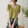 Summer New Thin Fashion Bat Sleeve Casual Loose Knitted Shirt Women Solid Elegant Ice Silk Blouse Women Simple Slim Office Ladies Shirts Tops 26633