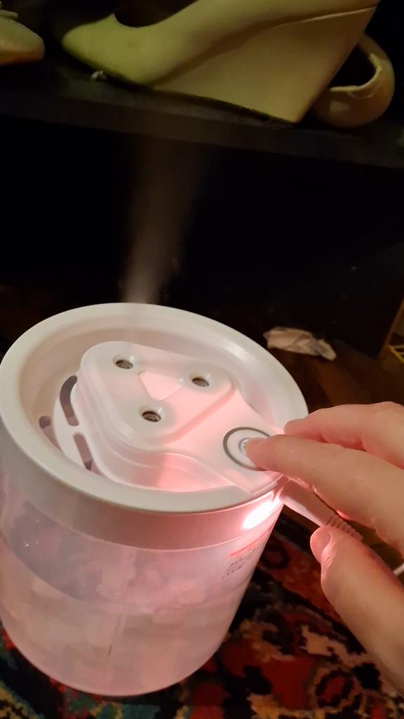 Works like a charm! Three fog fountains up to 50 centimeters high. No moisture is observed on the table surface around the evaporator during its operation. When completely filled with water, it works for 16 hours. In a 9 sq. meter room, it increases humidity from 22% to 42% in 8 hours.. When using filtered tap water, white dust (calcium) flies around after evaporation. We breathe this dust, and it settles on everything around. You need to use rainwater and distilled water. Or, weekly, dissolve the calcium in the spray head and cotton swabs with vinegar, rinse, and breathe in the calcium.