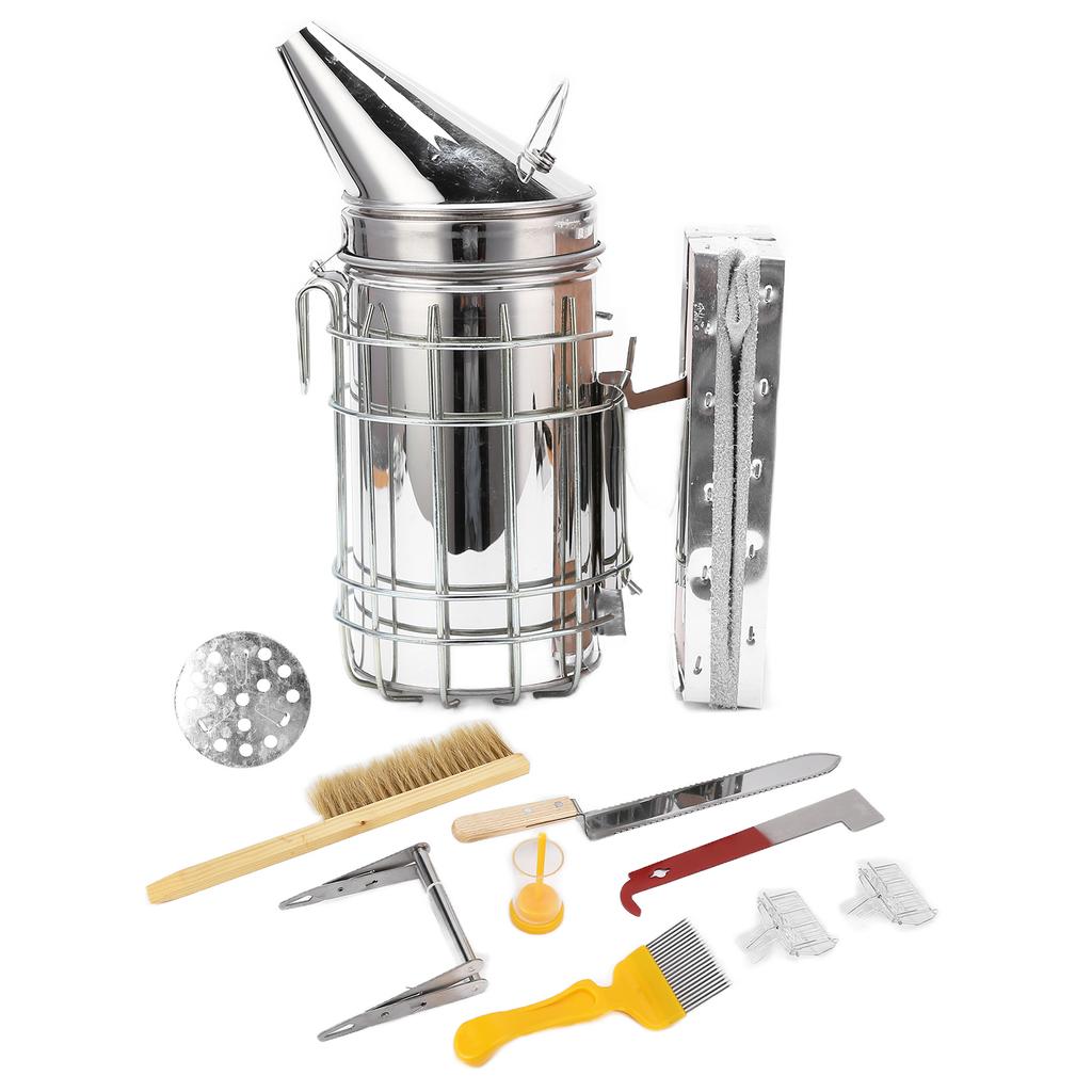 9Pcs/Set Beehive Smoker Kit with Bee Brush Yellow Needle Scratcher Serrated Blade Queen Bee Clips