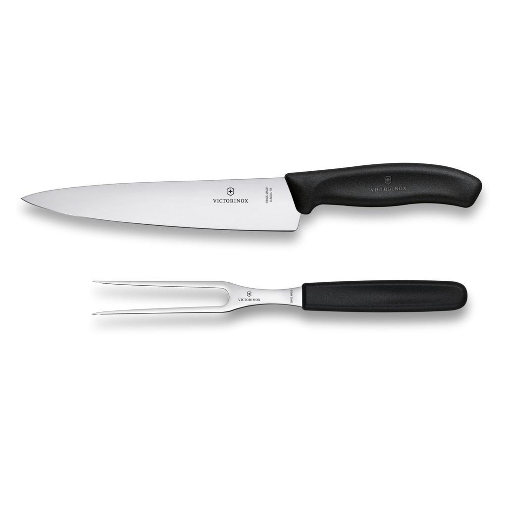 VICTORINOX Carving 2 Knife and Fork Convenient for Grilling BBQ and Dishwasher Swiss Classic Set, Set, Black, Steaks, Safe, 6.7133.2G