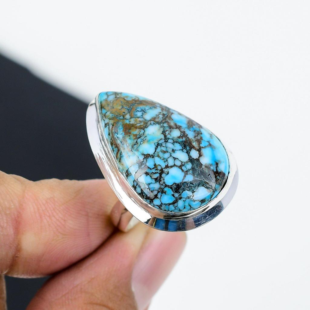 Natural Tibetan Turquoise Handmade 925 Sterling Silver Adjustable Ring
