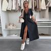 Fashion Sexy V-neck Denim Dress Women's Single Breasted Half Sleeved A-line Dress Solid Color Commute Minimalist Dresses Spring and Summer New