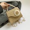 Grass-woven Pearl Hand-held One-shoulder Crossbody Bag Popular Small Bag High-value Summer New Beach Square Bag