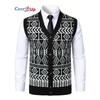 Cozy Up Men Color Block Plaid Knit Cardigan Vest with Buttons - Casual V-Neck, Sleeveless, Regular Fit for Spring/Fall