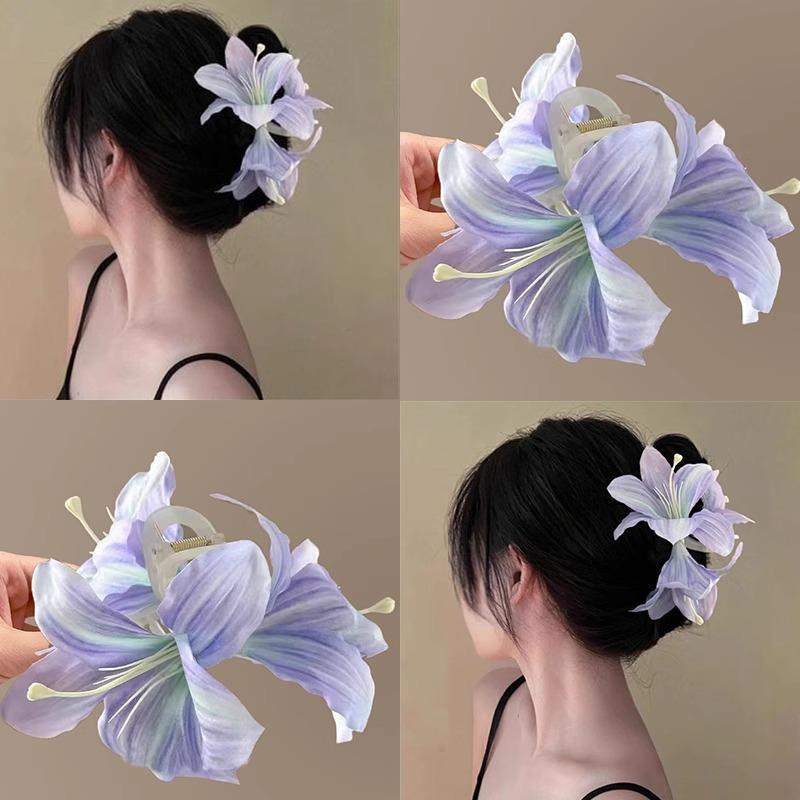 Lily Flower Shape Hair Claw Clips for Women Girls Barrette Crab Claw Clip Ponytail Hairpins Bath Beach Headwear Hair Accessories