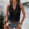Fashion New Solid V-neck Loose Casual Shirts Women Sleeveless Lace Splicing White Blouses for Women Summer Clothing Vintage Slim Fit Shirt Tops 26642