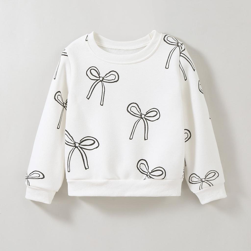 2-7 Years Kids Girl Round Neck Sweatshirt Cute Bowknot Print Long Sleeve Top Shirts