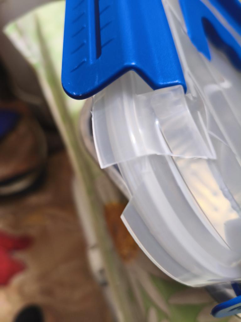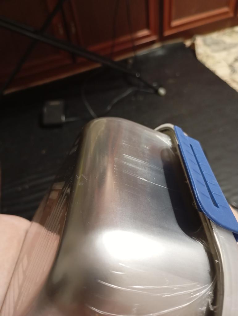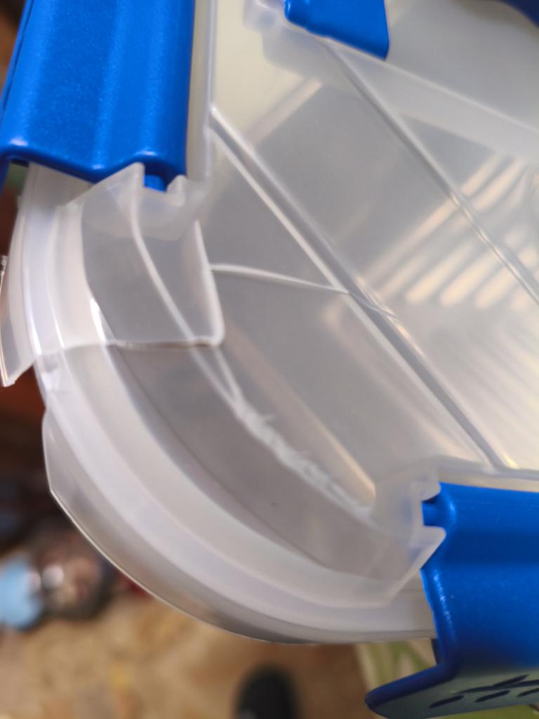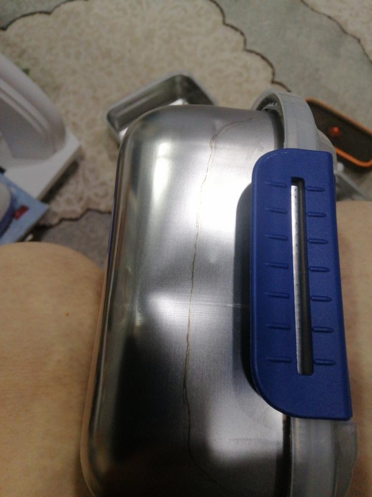 A dent on the housing and one clasp is broken, as a result of which the lid does not attach to the bowl.