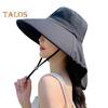 Women Sun Hat Large Brim Sun-Blocking Design Breathable UV Protection Hat Solid Color Adjustable Drawstring Outdoor Tea Hat