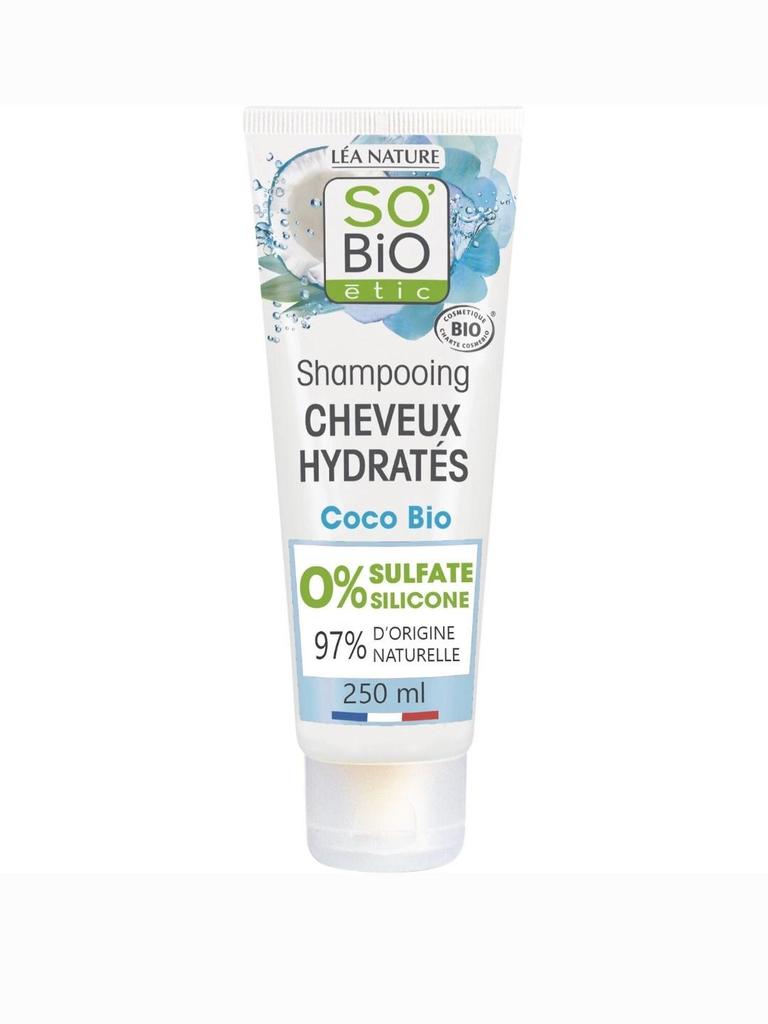 SO BiO étic Hydrated Hair Shampoo, designed for all hair types, combines the action of organic fair trade coconut oil with recognized film-forming properties that help protect the hair with that of hyaluronic acid, known for its moisturizing activity. Formulated without sulfate and silicone to respect your hair. Result: Your hair is moisturized for 48 hours, soft and shiny! - Healthy hair in 3 shampoos - Soft hair: 86% - Light hair: 83% % satisfaction, obtained after 5 uses. Panel carried out on 83 women. COSMOS ORGANIC certified by ECOCERT Greenlife 98% natural origin 0% sulfate*, silicone *without sulfated surfactants +ETHICS: - Fair trade organic sector - New plant-based tube (excluding cap): 35% less plastic vs. the previous 250 ml tube - Made in France - 1% for the planet