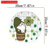 2D Flat 20*20cm1pc St. Patrick's Day Old Elf Dwarf In green&Four-leaf Grass Patterns Lucky Wooden Hanging Decoration, Front Door Vintage Welcome Plaqu