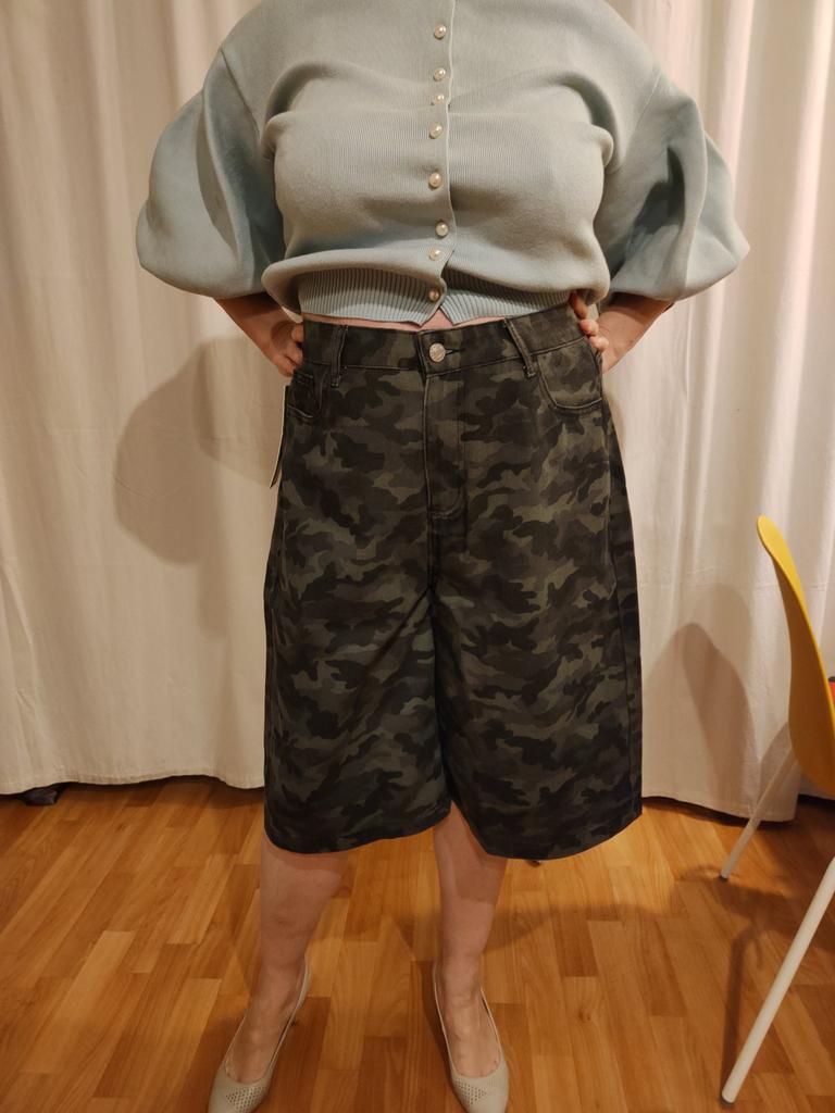 DIMANAF Plus Size 2025 Women Shorts Pants Summer Loose Jeans Short Camouflage High Waist Pockets Pants Elastic Waist