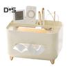Elevate your desk with this modern tissue box holder featuring storage compartments for pens, smartphones, cosmetics, and more. Keep your workspace tidy and stylish effortlessly.