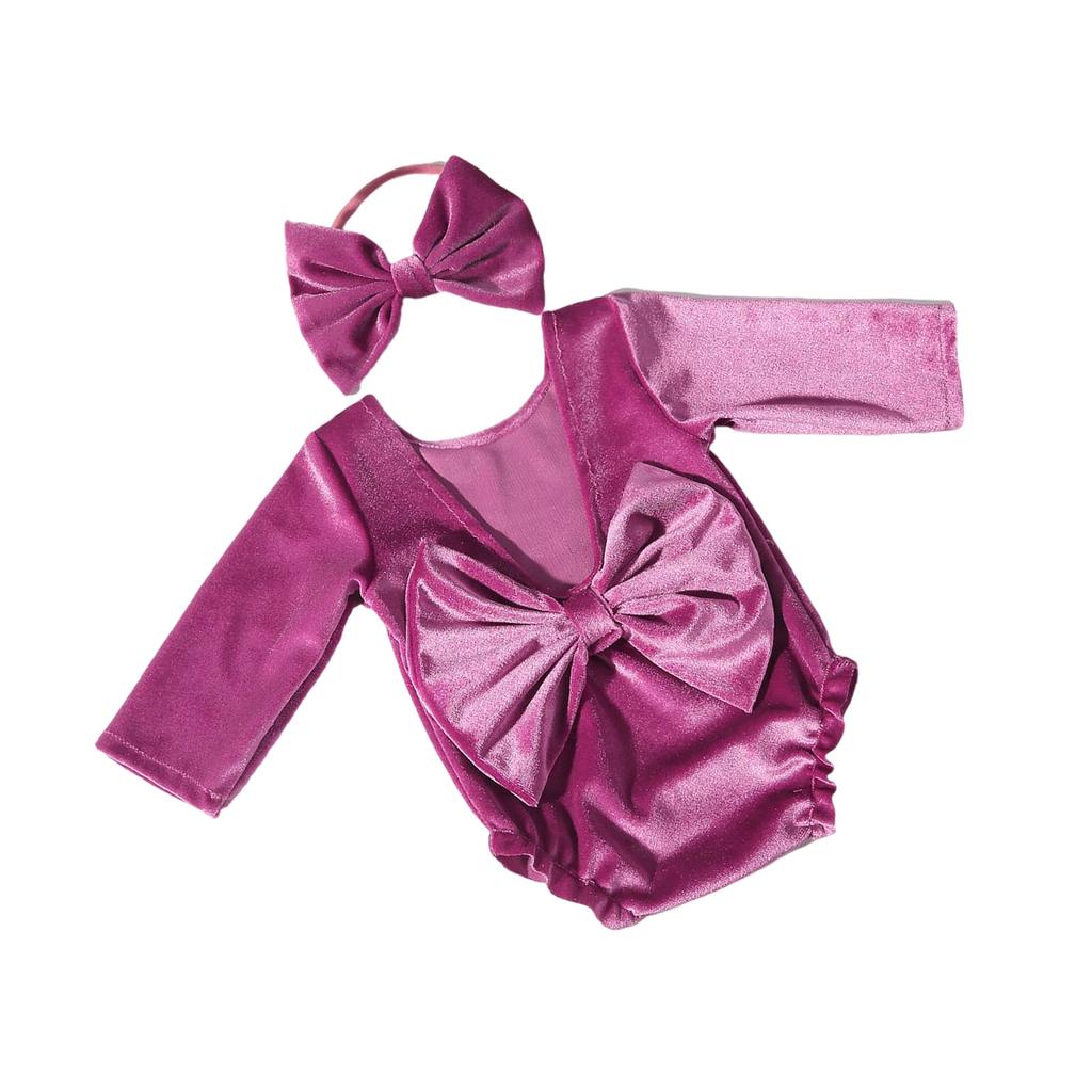 Baby Photo Shoot Clothes Girl Bowknot Headband Romper Outfit Newborns Photography Props Costume Clothing Infant Supply