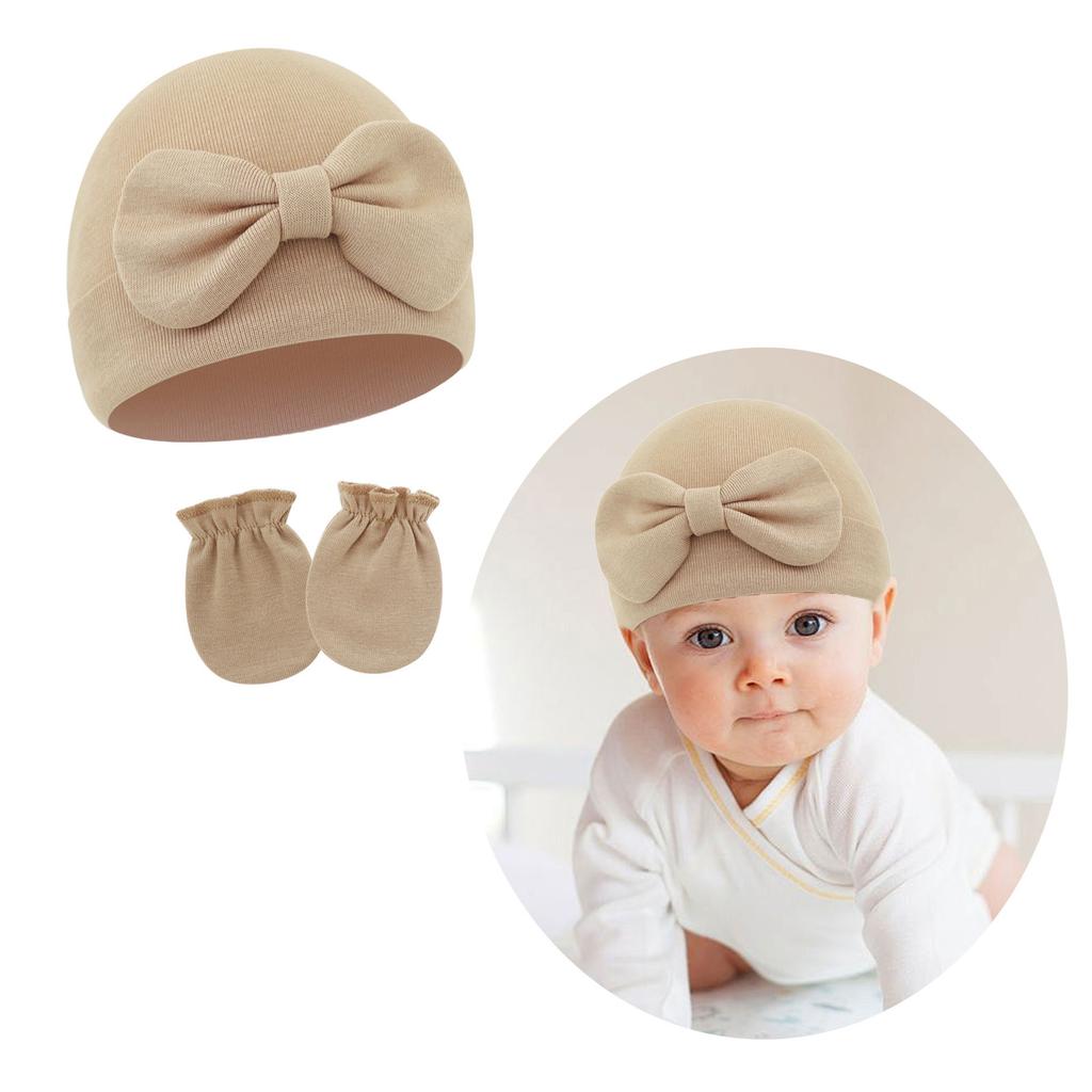 2025 Baby Bonnet Newborns Fetal Cap Fashionable Brimless Hat Trendy Headgear with Anti-grab Mittens Soft Gloves