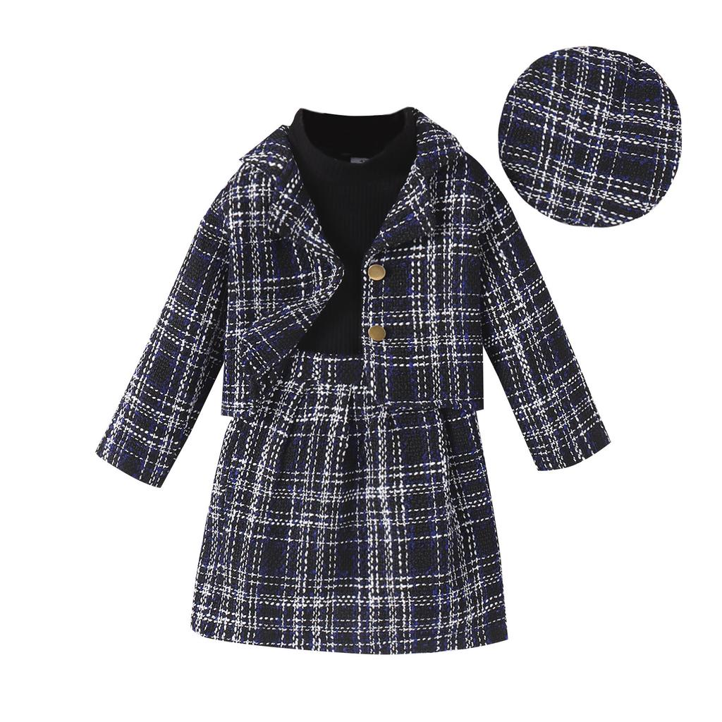 Girls Fashion Suit Autumn and Winter Children's Casual Coat Turtleneck Top Plaid Skirt Hat Suit