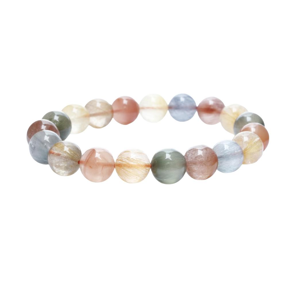 KOUOKU Old Multicolor Rutilated Quartz Bracelet 10mm Power Stone Money Luck Good Luck Brazilian Natural Stone Prayer Beads Rutilated Quartz [K