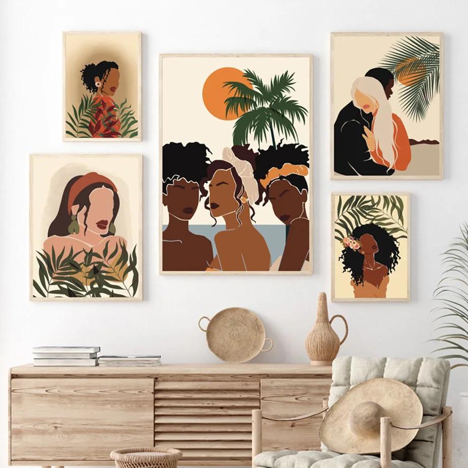 Abstract Black Girl Beach Palm Vacation Wall Art Canvas Painting Nordic Posters And Prints Wall Pictures For Living Room Decor