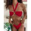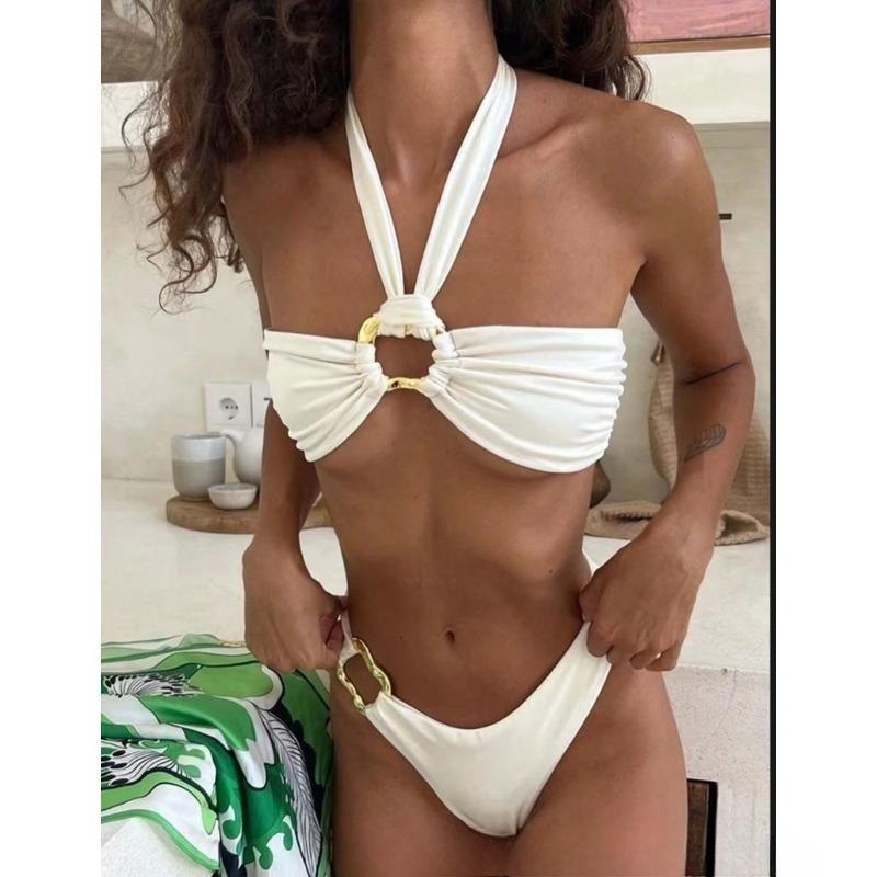 Sexy Neck-buckle, Irregularly Cut, Backless, Plunging Top Swimming Suit for Women In A Two-piece Set