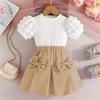 Summer Children Leaf Inclined Shoulder Craft Skirt Girl Fashion Casual Suit